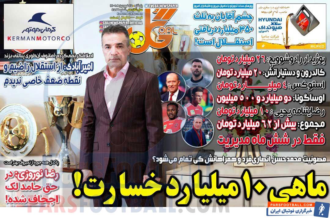 عناوین روزنامه گل پنجشنبه ۲۵ فروردین ماه به شرح زیر است :