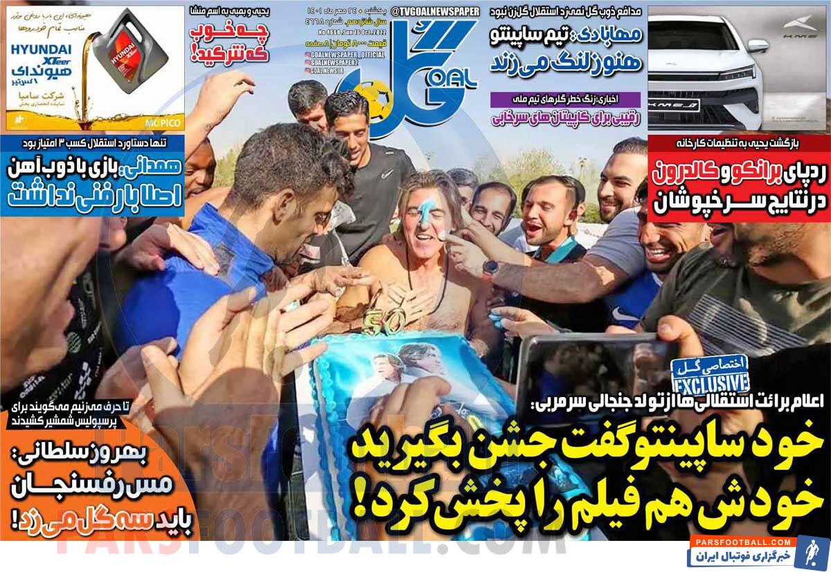 عناوین روزنامه گل یکشنبه ۲۴ مهر ماه به شرح زیر است :