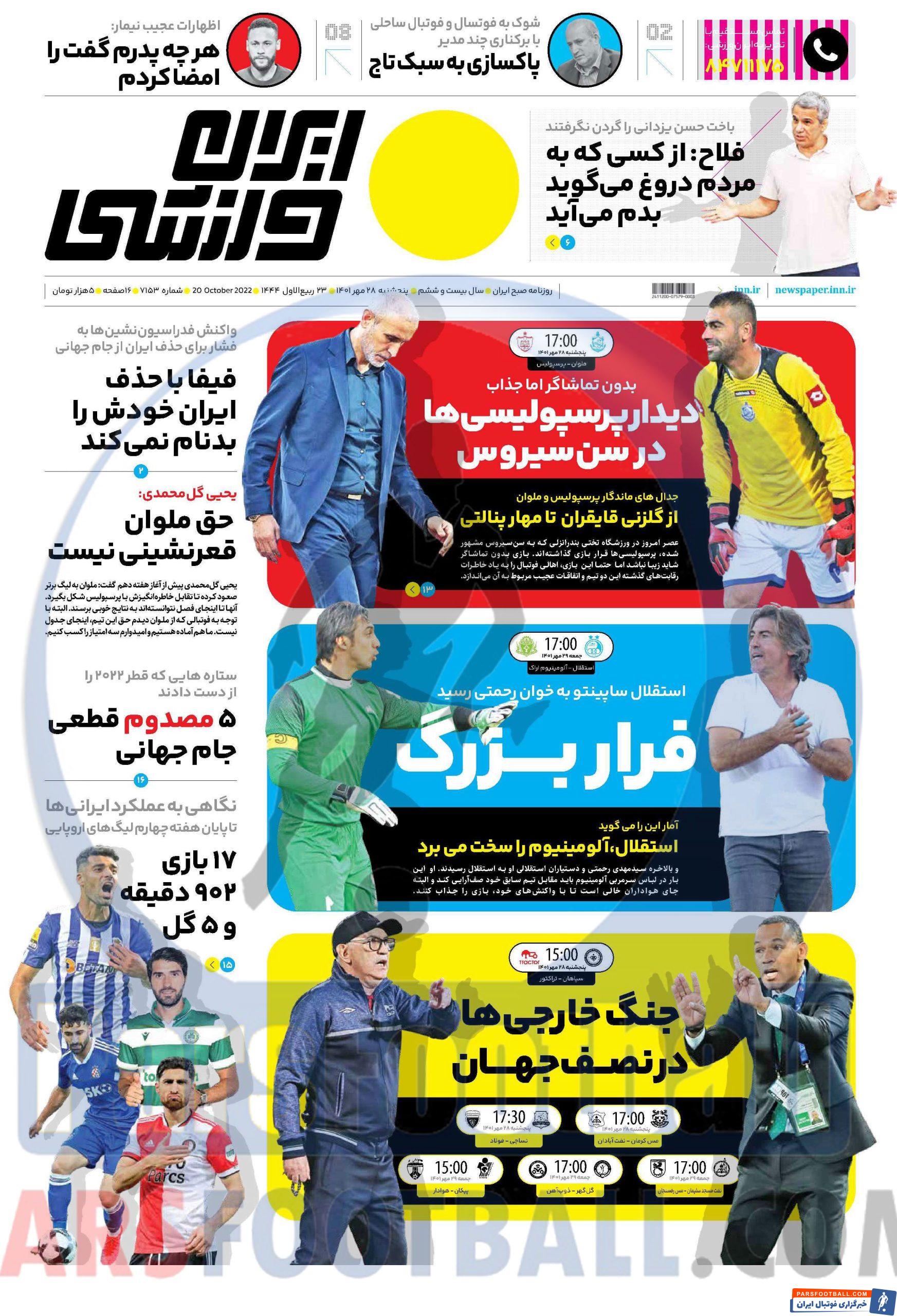 مرور عناوین مهم روزنامه ایران ورزشی پنجشنبه 28 مهر ماه سال 1401
