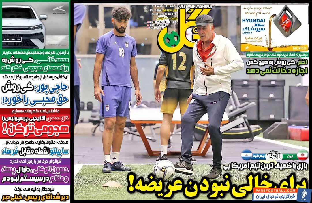 مرور عناوین مهم روزنامه گل پنجشنبه 19 آبان ماه سال 1401