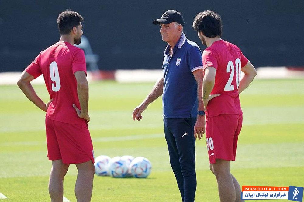جلسه خصوصی کارلوس کیروش با مهدی طارمی و سردار آزمون در تمرین تیم ملی