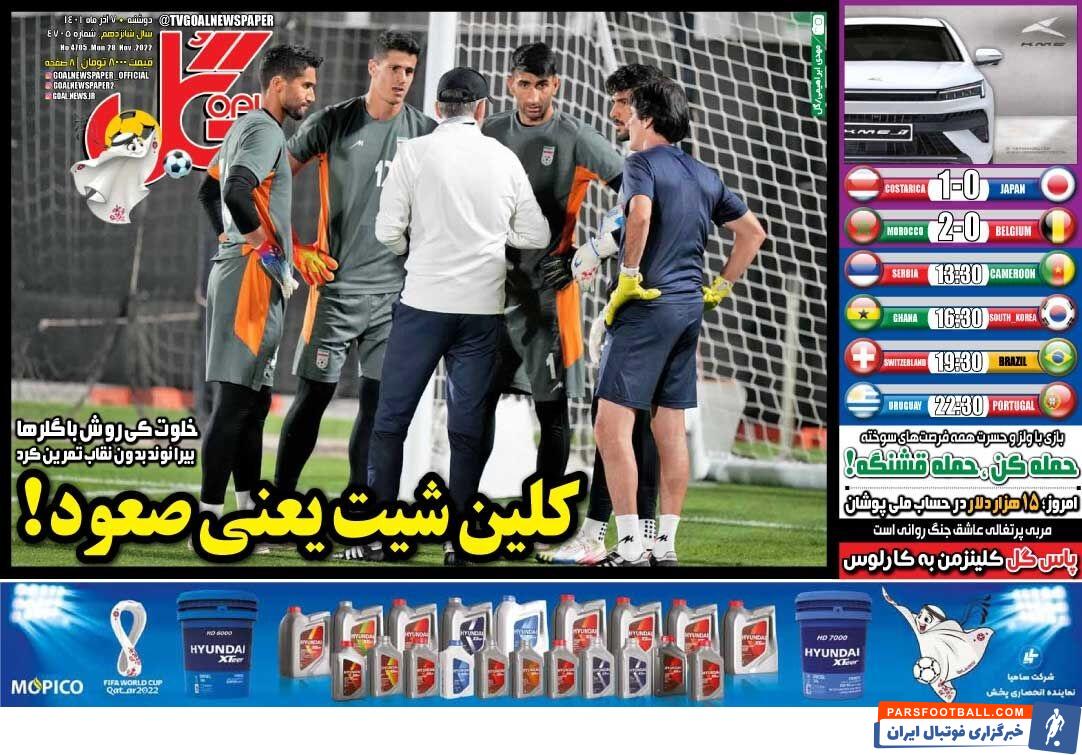 مرور عناوین مهم روزنامه گل دوشنبه 7 آذر ماه سال 1401