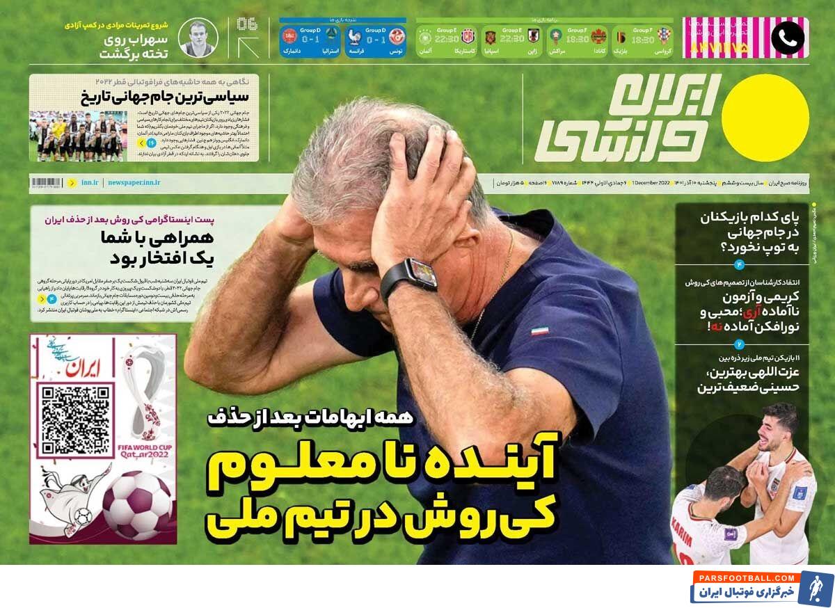 مرور عناوین مهم روزنامه ایران ورزشی پنجشنبه 10 آذر ماه سال 1401