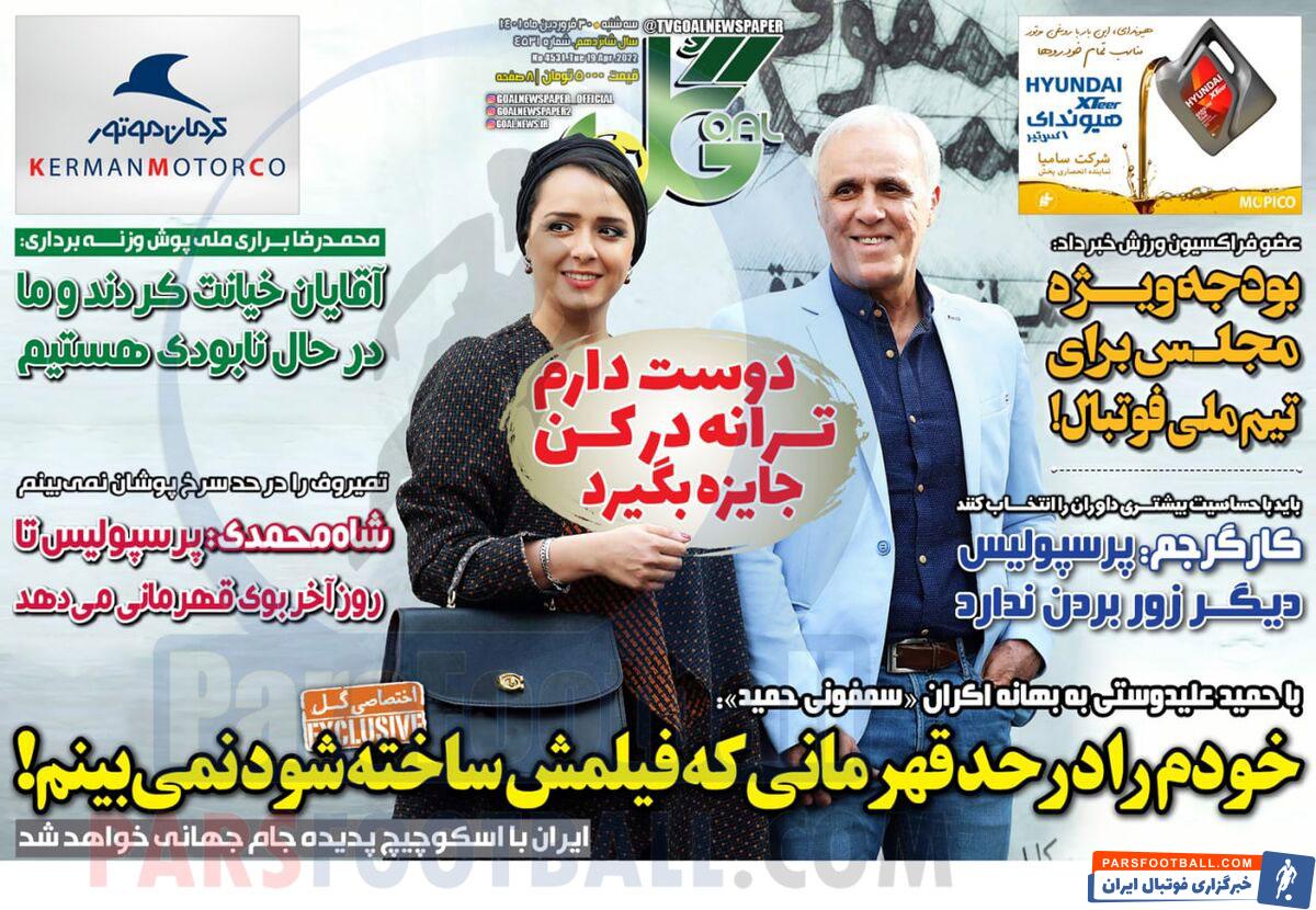 عناوین روزنامه گل سه شنبه ۳۰ فروردین ماه به شرح زیر است :