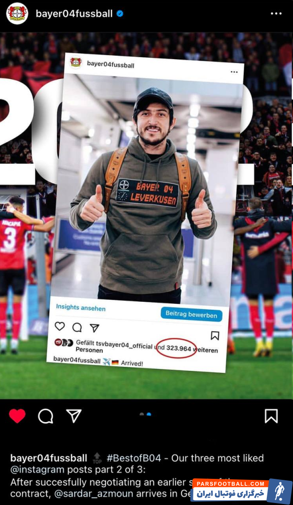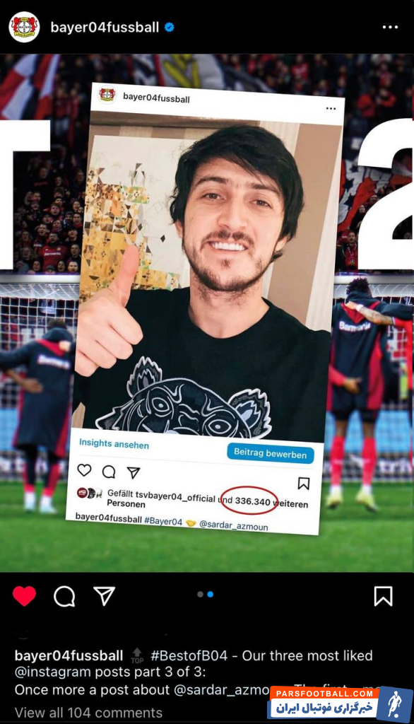 یکی از مزایای لژیونر شدن بازیکنان ایرانی این است که شبکه های اجتماعی تیمها بعد از این انتقال با سیل فالوور روبرو میشوند. با انتقال سردار آزمون به بایر لورکوزن این تیم آلمانی نیز بی نصیب نماند و با افزایش چشمگیر تعداد دنبال کننده های ایرانی بعد از رسمی شدن این انتقال روبرو شد. نکته جالب این است که سه پستی که بیشترین لایک را در صفحه رسمی لورکوزنی ها داشته پست هایی است که عکس سردار آزمون ستاره ایرانی این تیم در آن به اشتراک گذاشته شده است.