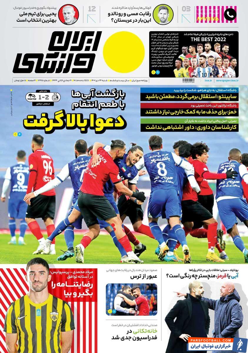 عناوین روزنامه ایران ورزشی شنبه ۲۴ دی ماه به شرح زیر است :