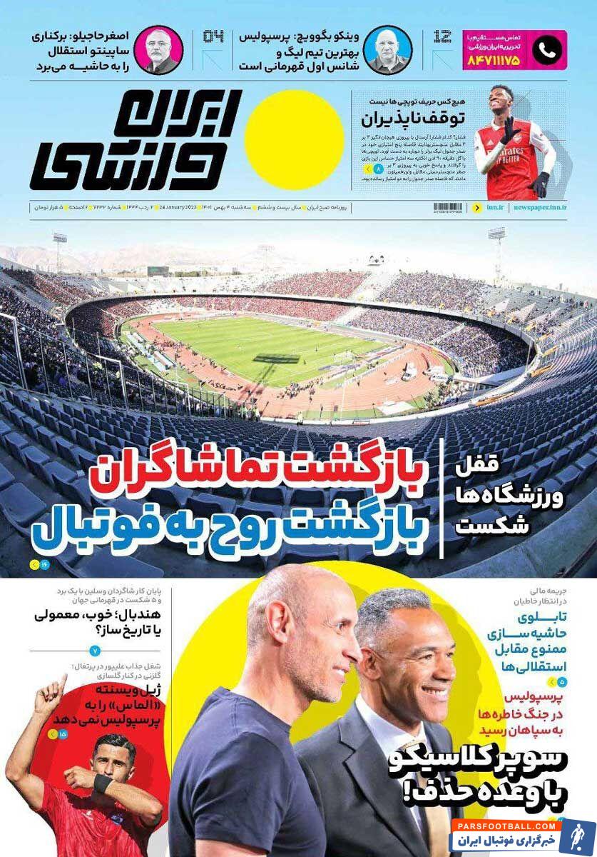 عناوین روزنامه ایران ورزشی سه شنبه ۴ بهمن ماه به شرح زیر است :
