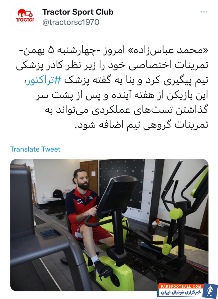 باشگاه تراکتور با انتشار یک توئیت درمورد آخرین وضعیت محمد عباسزاده ، مهاجم مصدوم خود اطلاع رسانی کرد.