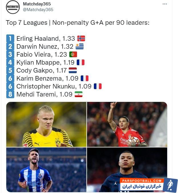 بر همین اساس، سایت «Matchday365» با ارائه آماری به معرفی ماشین گلزنیهای این فصل ۷ لیگ معتبر فوتبال جهان پرداخته است. که در این بین نام «مهدی طارمی» مهاجم ملیپوش پورتو نیز در رده هشتم این فهرست به چشم میخورد.