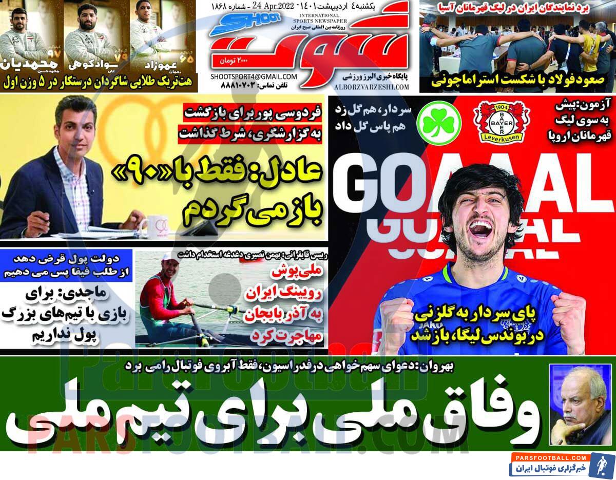عناوین روزنامه شوت یکشنبه ۴ اردیبهشت ماه به شرح زیر است :