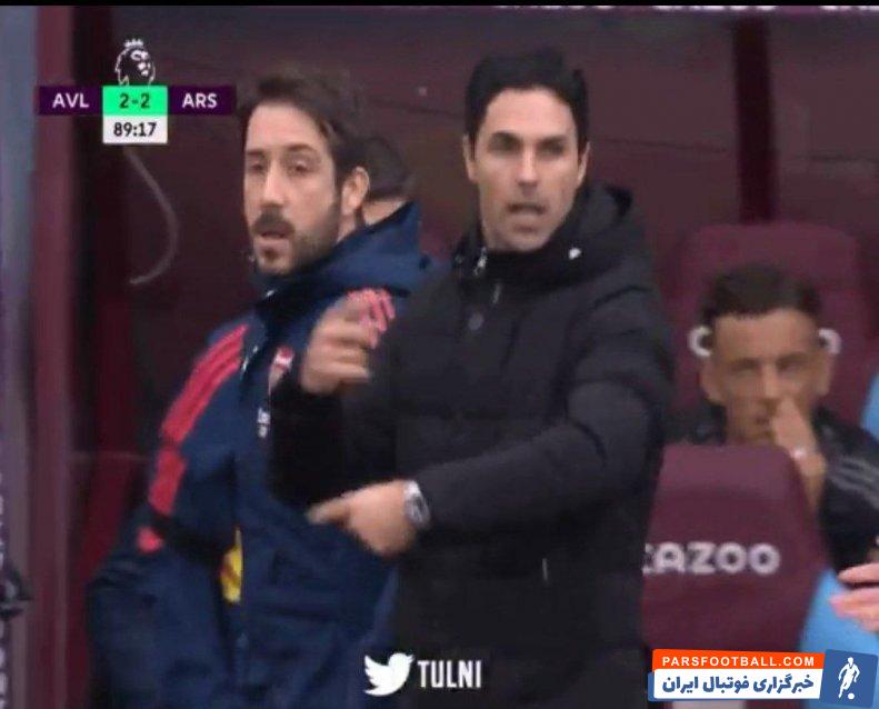 میکل آرتتا در آخرین دقایق بازی آرسنال مقابل استون ویلا که با پیروزی ۴-۲ توپچی‌ها همراه شد، در حال تمسخر داور، سیمون هوپر، توسط دوربین‌ها شکار شد.