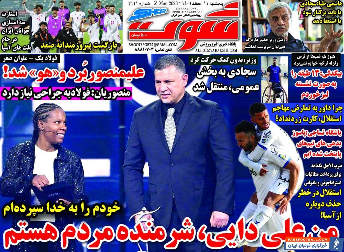 عناوین روزنامه شوت پنجشنبه ۱۱ اسفند ماه به شرح زیر است :