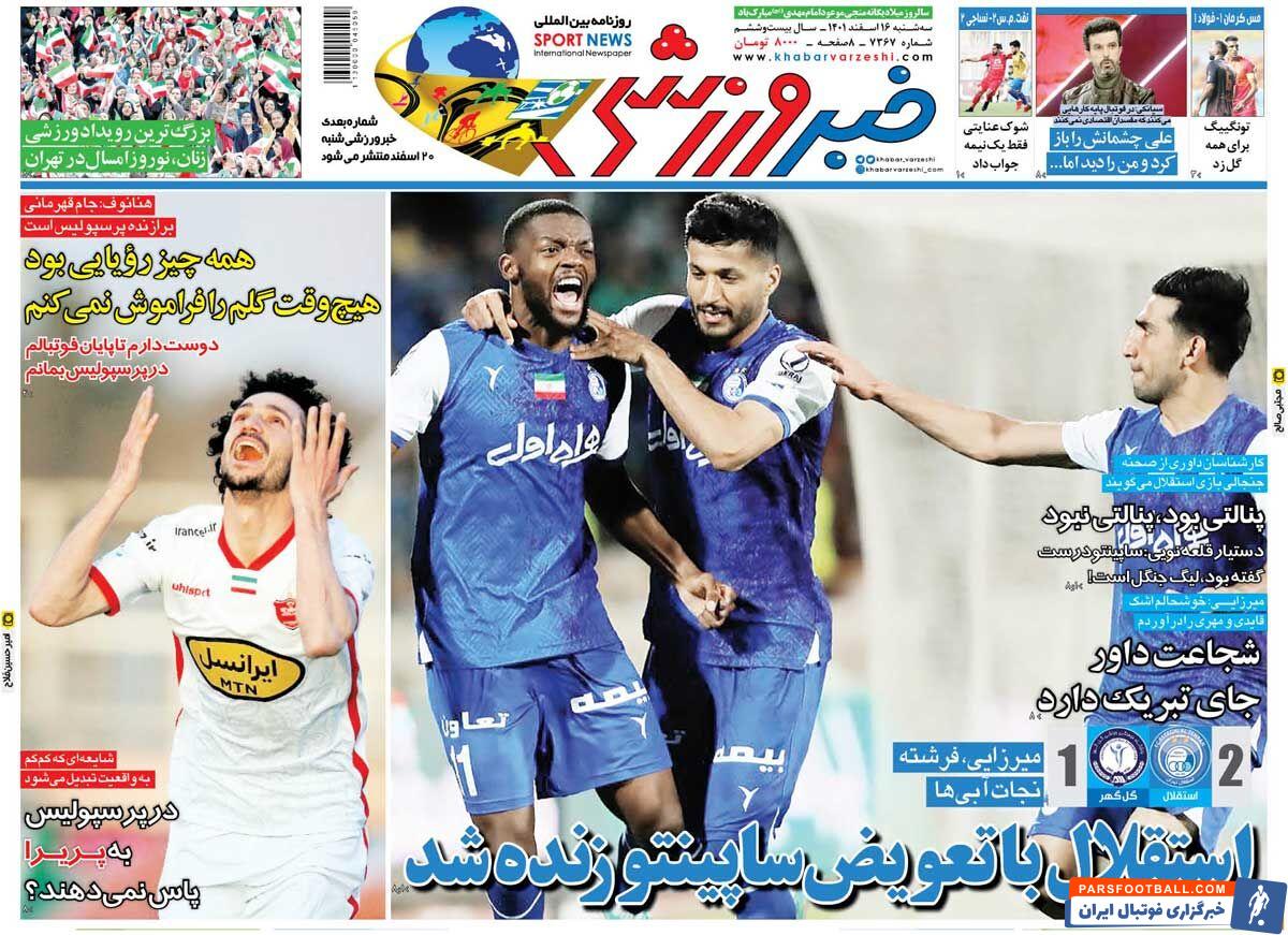 عناوین روزنامه خبر ورزشی سه شنبه ۱۶ اسفند ماه به شرح زیر است :