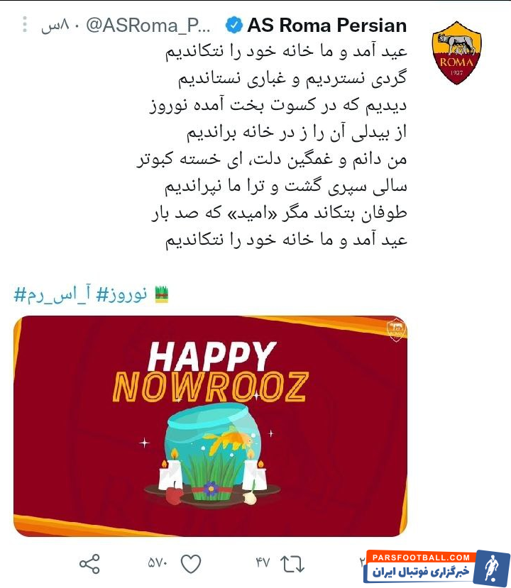 تبریک عید نوروز توسط باشگاه رم ایتالیا