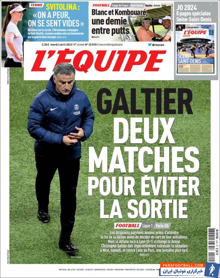 روزنامه اکیپ : گالتیه دو بازی دیگر فرصت دارد تا از هدایت پاری سن ژرمن برکنار نشود