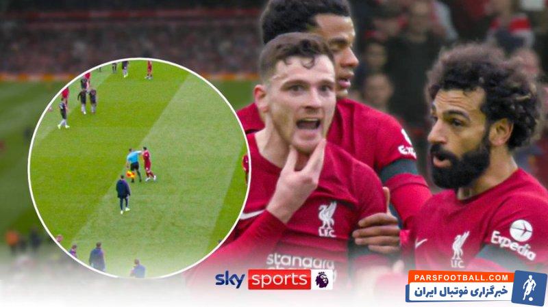 در اتفاقی عجیب، کمک داور بازی لیورپول و آرسنال، ضربه‌ای را به صورت اندی رابرتسون مدافع لیورپول وارد کرد.
