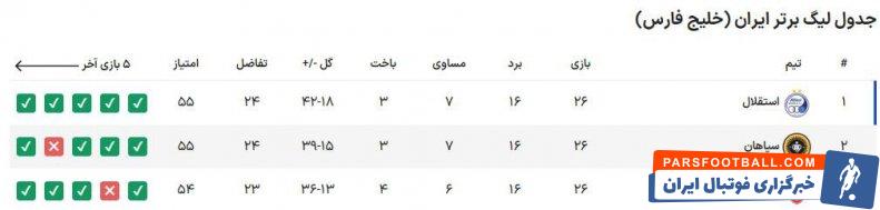 استقلال صدرنشین است اما با توجه به بازی رو در رو ، سپاهان با این جدول قهرمان خواهدشد