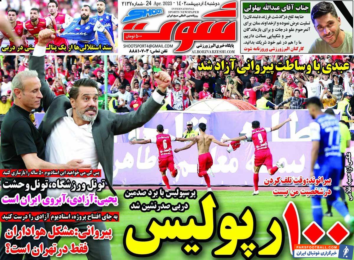 عناوین روزنامه شوت دوشنبه ۴ اردیبهشت ماه به شرح زیر است :
