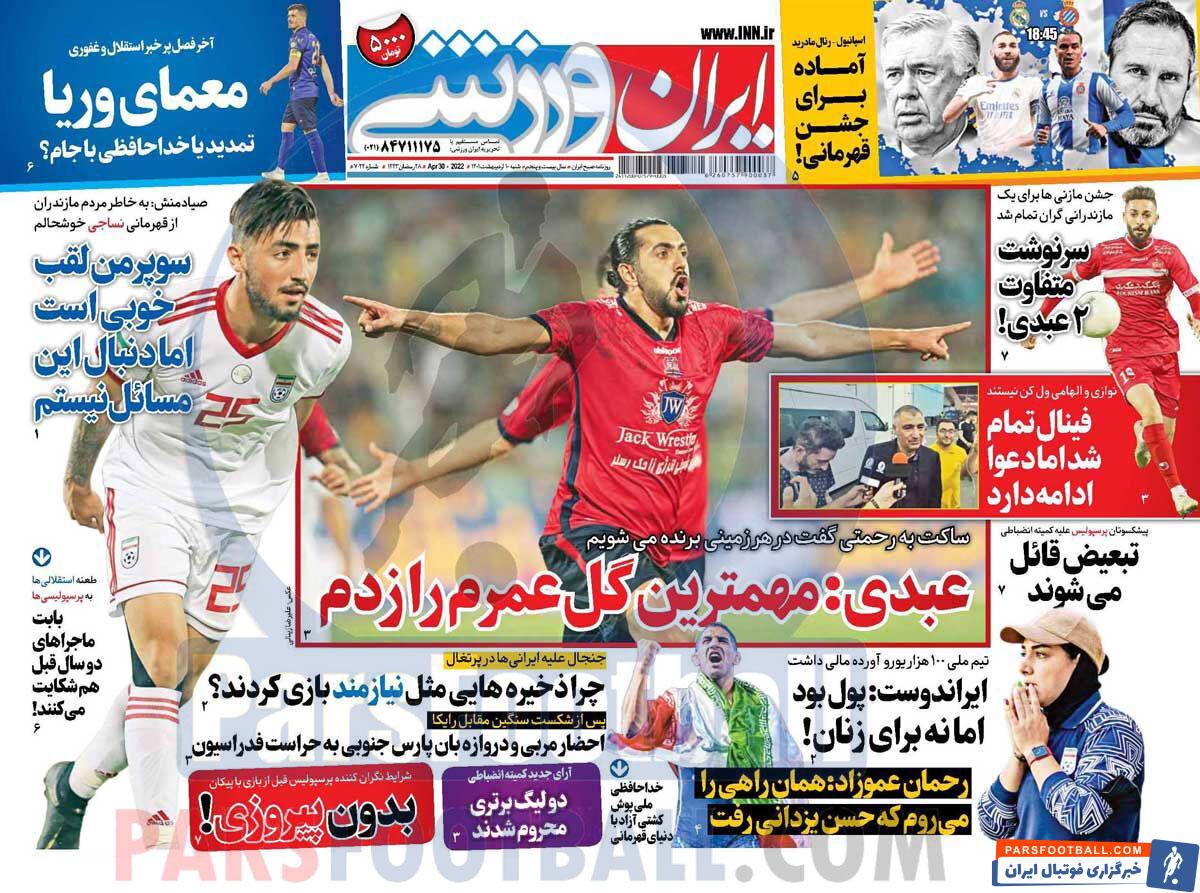 مرور عناوین مهم روزنامه ایران ورزشی شنبه 10 اردیبهشت ماه سال 1401