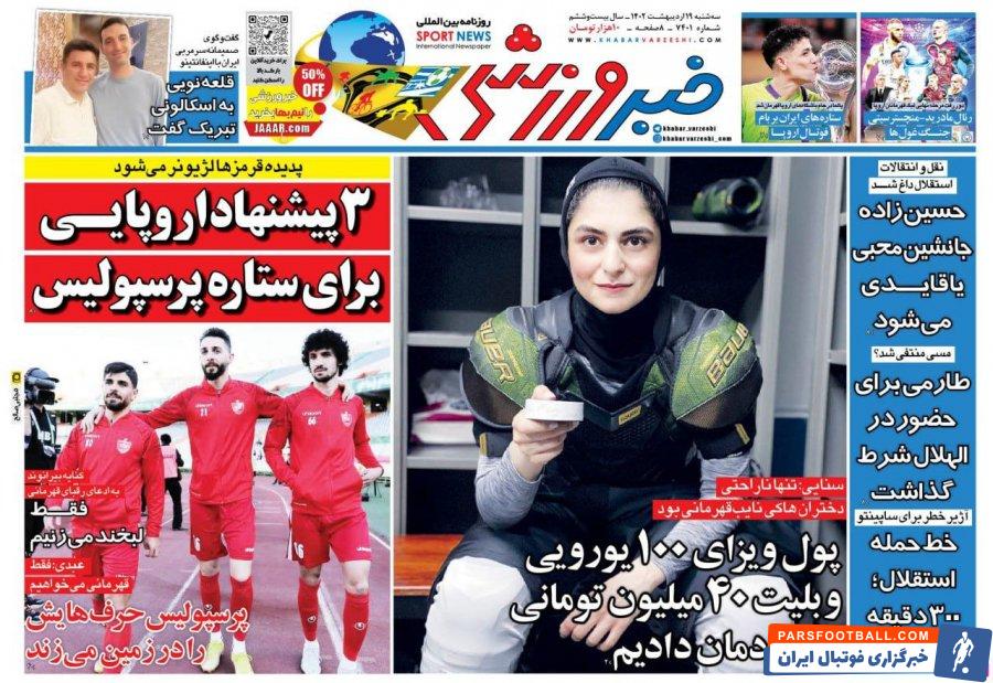 عناوین روزنامه خبر ورزشی سه شنبه ۱۹ اردیبهشت ماه به شرح زیر است :