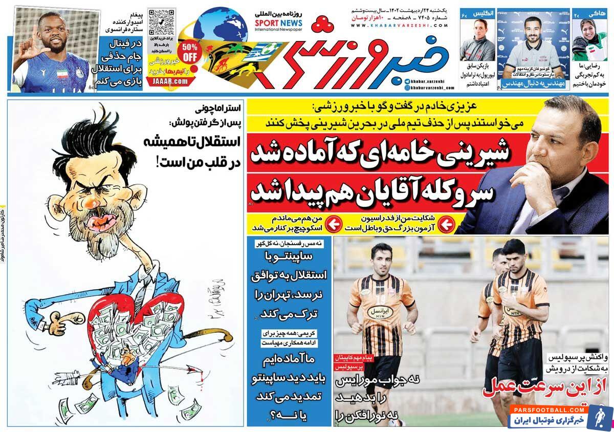 مرور عناوین مهم روزنامه خبر ورزشی روز یکشنبه 24 اردیبهشت ماه سال 1401