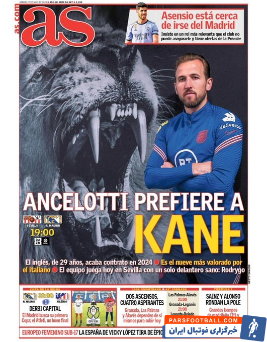 تصویر هری کین روی جلد روزنامه آ.س دیده میشود و این روزنامه در تیتر اولش مدعی است: “آنچلوتی، کین را ترجیح میدهد.”