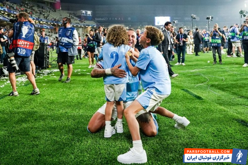 شاید به جرئت باید گفت زیباترین لحظه ثبت شده از جشن قهرمانی منچسترسیتی در UCL تقسیم خوشحالی کایل واکر به همراه فرزندانش است.