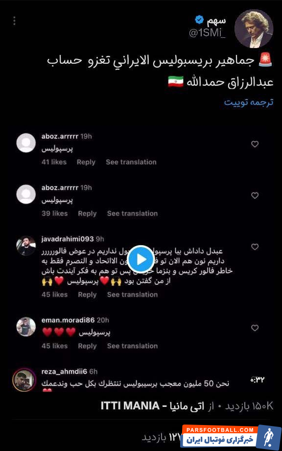 هجوم هواداران پرسپولیس به حساب توییتری حمدالله سوژه رسانه های عربی