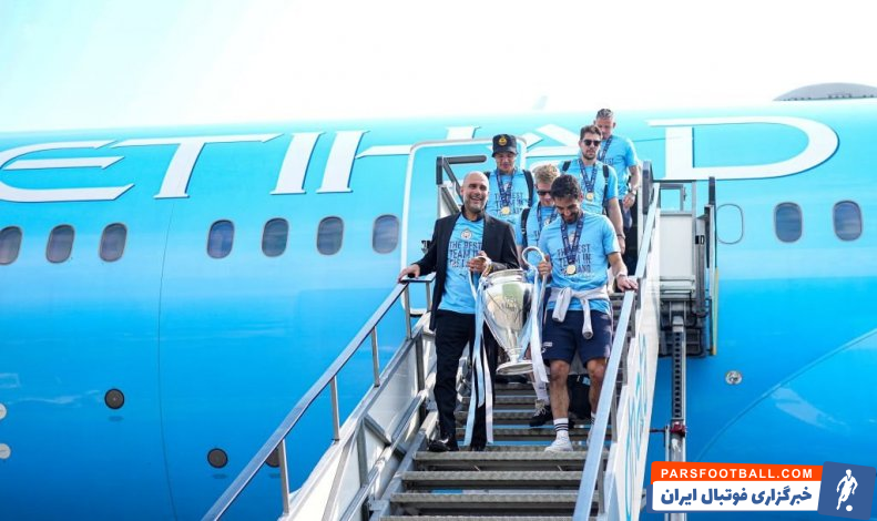 بازگشت بازیکنان و کادر فنی منچسترسیتی بعد از فتح لیگ قهرمانان اروپا به انگلیس