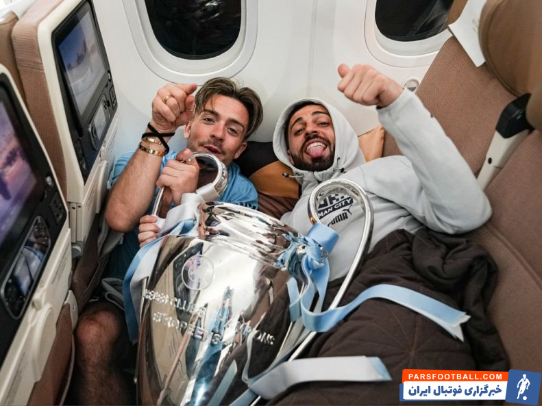 آیمریک لاپورت در پرواز استانبول-لندن جام قهرمانی را در آغوش گرفته بود و جک گریلیش رهبری یک جشن گروهی پرستاره با حضور ارلینگ هالند، برناردو سیلوا و کوین دی‌بروین را به عهده داشت. دیگر بازیکنان تیم هم در صندلی‌های خود به گرفتن عکس یادگاری با جام و مدال قهرمانی مشغول بودند.