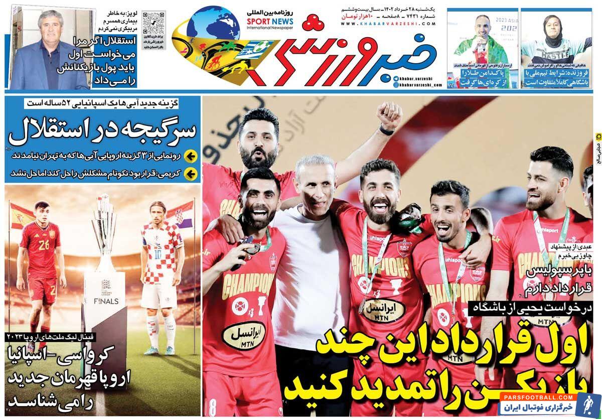 مرور عناوین مهم روزنامه خبر ورزشی روز یکشنبه 28 خرداد ماه سال 1401