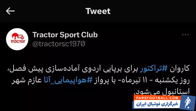 خبر رسمی تراکتور از برگزاری اردوی آماده سازی در ترکیه