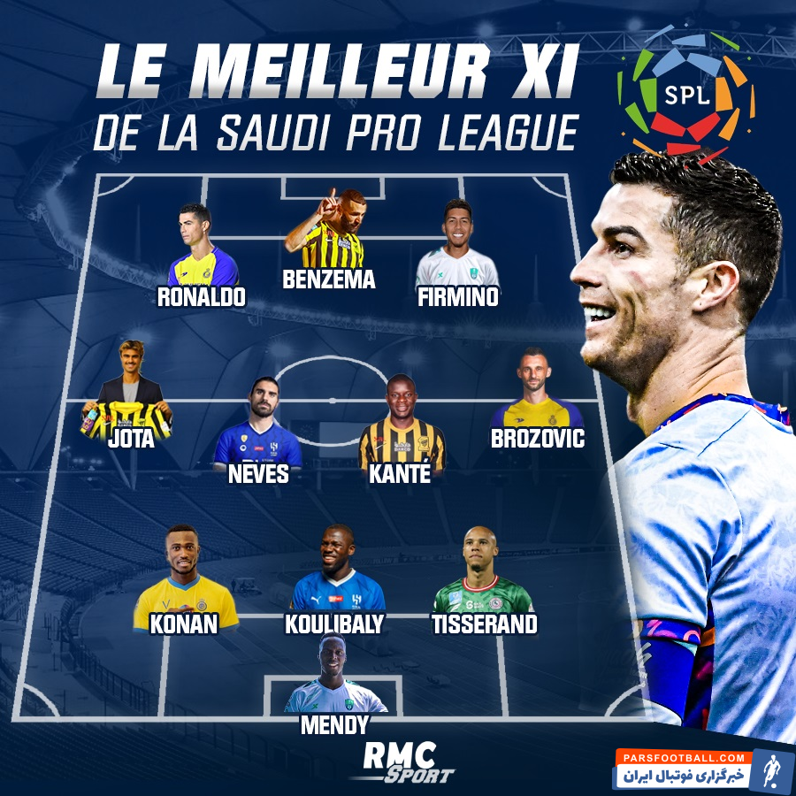 شماتیک یک ترکیب پرستاره تیم منتخب بازیکنان سرشناسی را نشان می دهد که در چند وقت اخیر به لیگ حرفه ای عربستان ملحق شده اند.