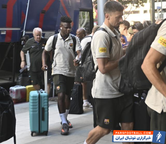 بازیکنان و اعضای بارسلونا برای برگزاری اردوی پیش فصل وارد لس آنجلس شدند و با استقبال گرم و صمیمانه مردم این شهر مواجه شدند.