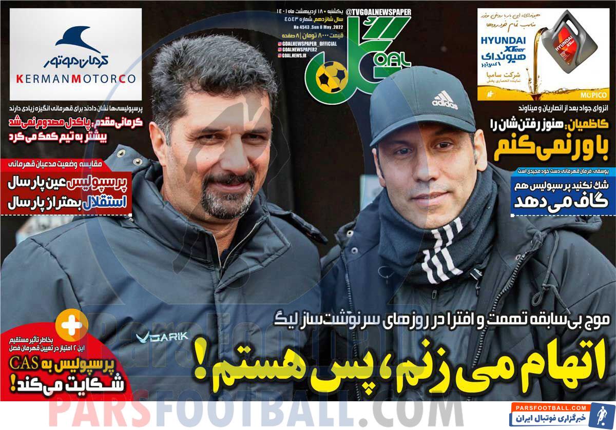 عناوین روزنامه گل یکشنبه ۱۸ اردیبهشت ماه به شرح زیر است :