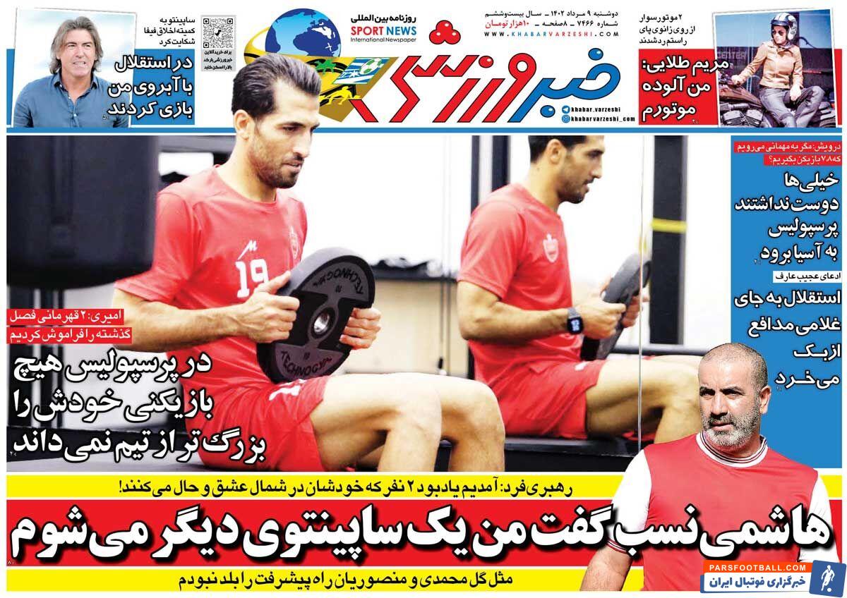 عناوین روزنامه خبر ورزشی دوشنبه ۹ مرداد ماه به شرح زیر است :
