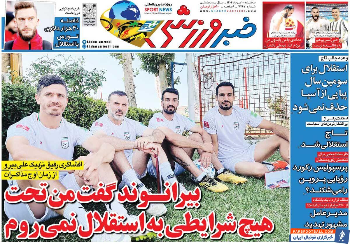 مرور عناوین مهم روزنامه خبر ورزشی سه شنبه 10 مرداد ماه سال 1401