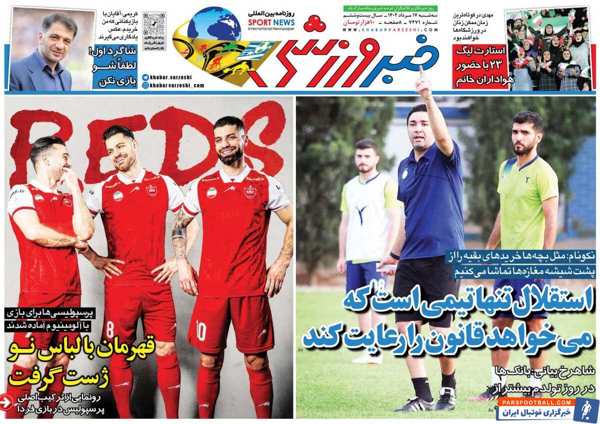 عناوین روزنامه خبر ورزشی سه شنبه ۱۷ مرداد ماه به شرح زیر است :