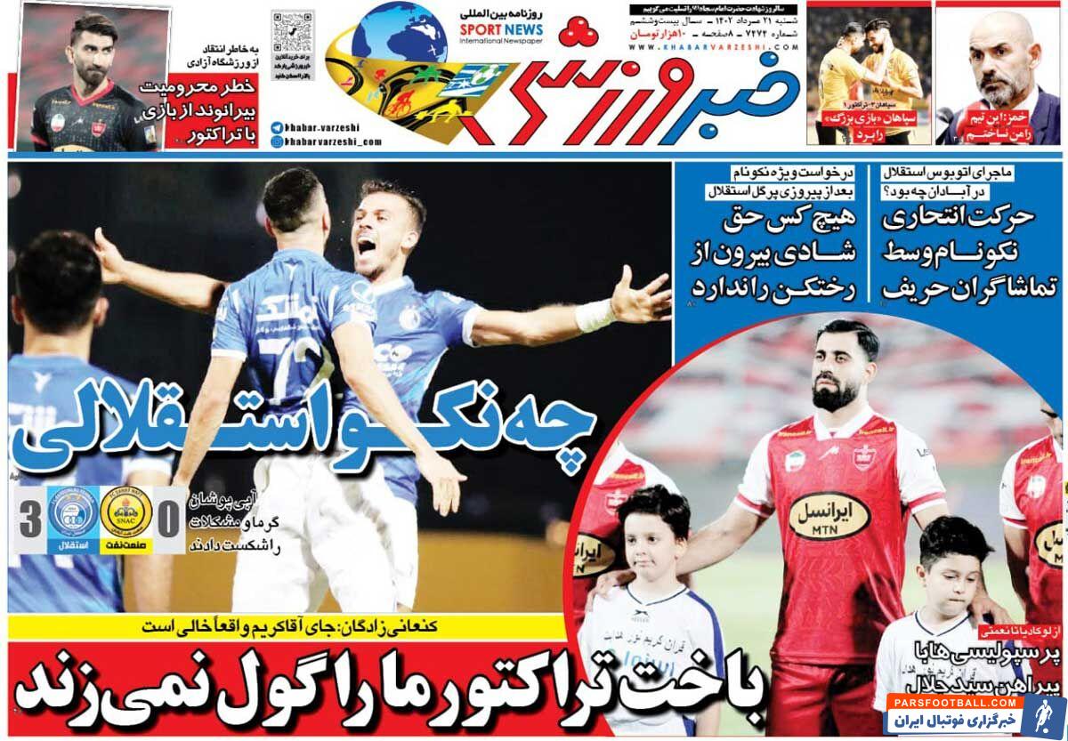 عناوین روزنامه خبر ورزشی شنبه ۲۱ مرداد ماه به شرح زیر است :