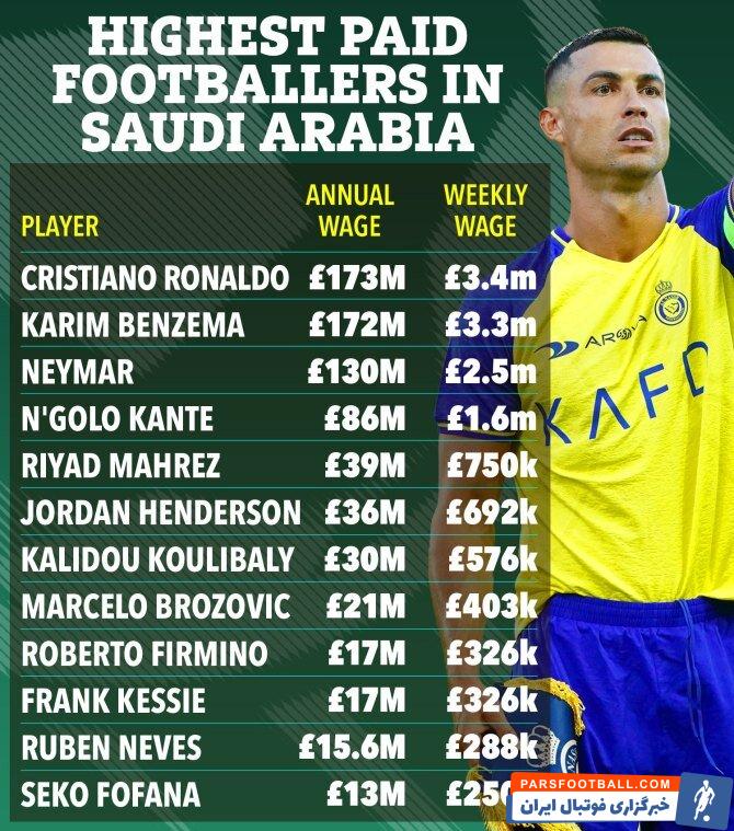 نیمار آخرین ستاره معروفی بود که رقمی مجومی به الهلال پیوست و قرار است دستمزدی رویایی از این تیم دریافت کند. پس از انتقال نیمار به الهلال، فهرستی از پردرآمدترین بازیکنان حاضر در لیگ عربستان منتشر شده که ارقامی باورنکردنی در آن دیده میشود: