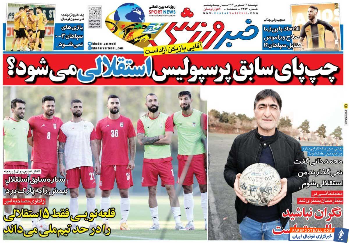 روزنامه خبر ورزشی دوشنبه ۱۳ شهریور ماه به شرح زیر است :