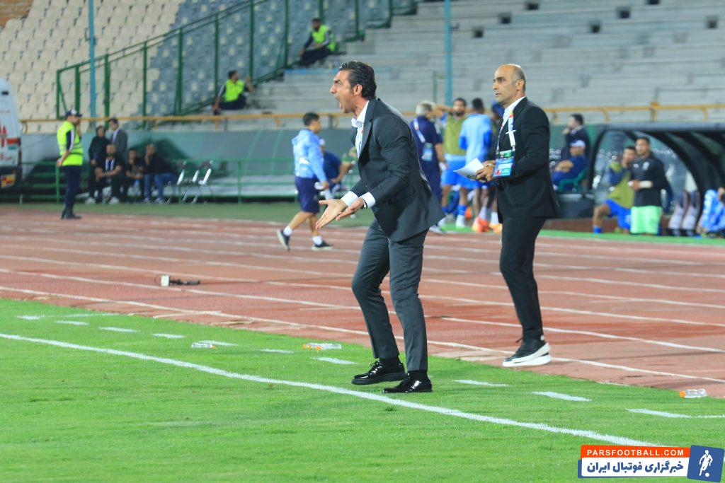 تصاویر فریاد مهدی رحمتی بر سر بازیکنانش در دیدار نساجی - الهلال