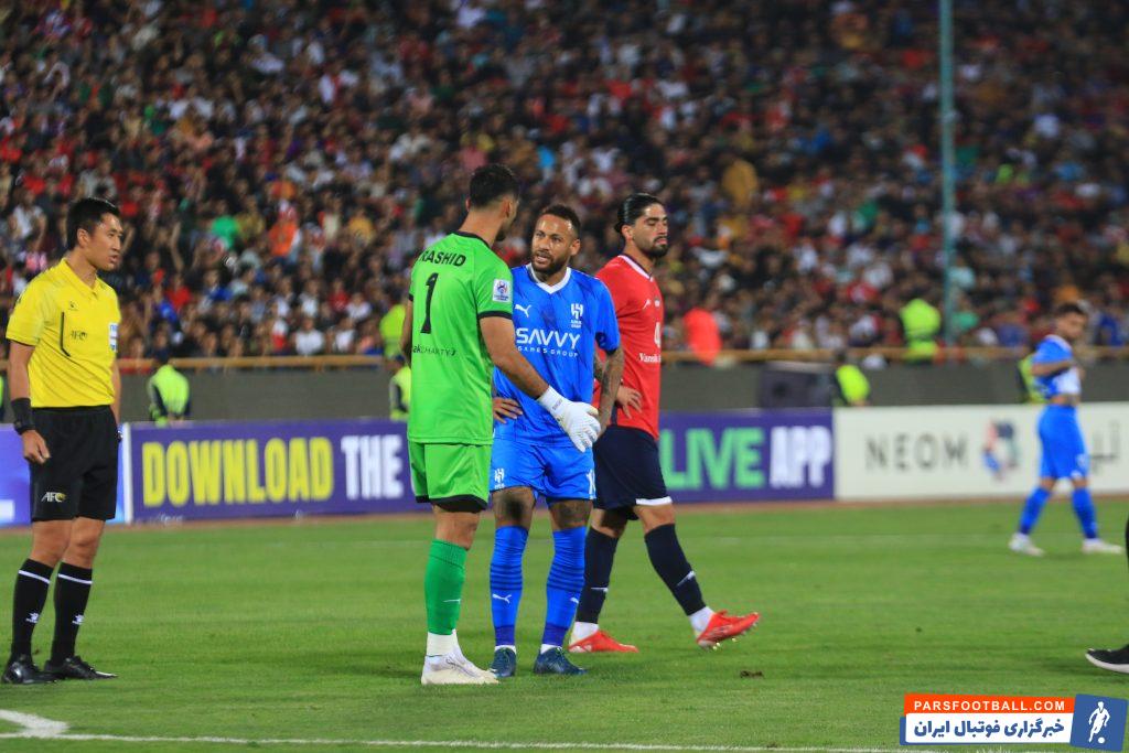تصاویری از صحبت های نیمار با رشید مظاهری در جریان دیدار نساجی - الهلال