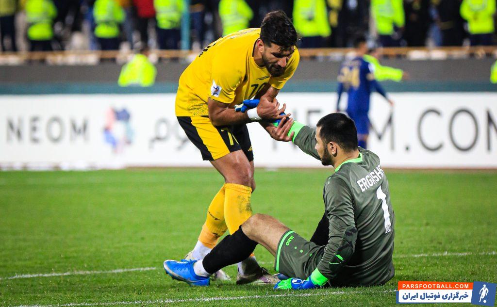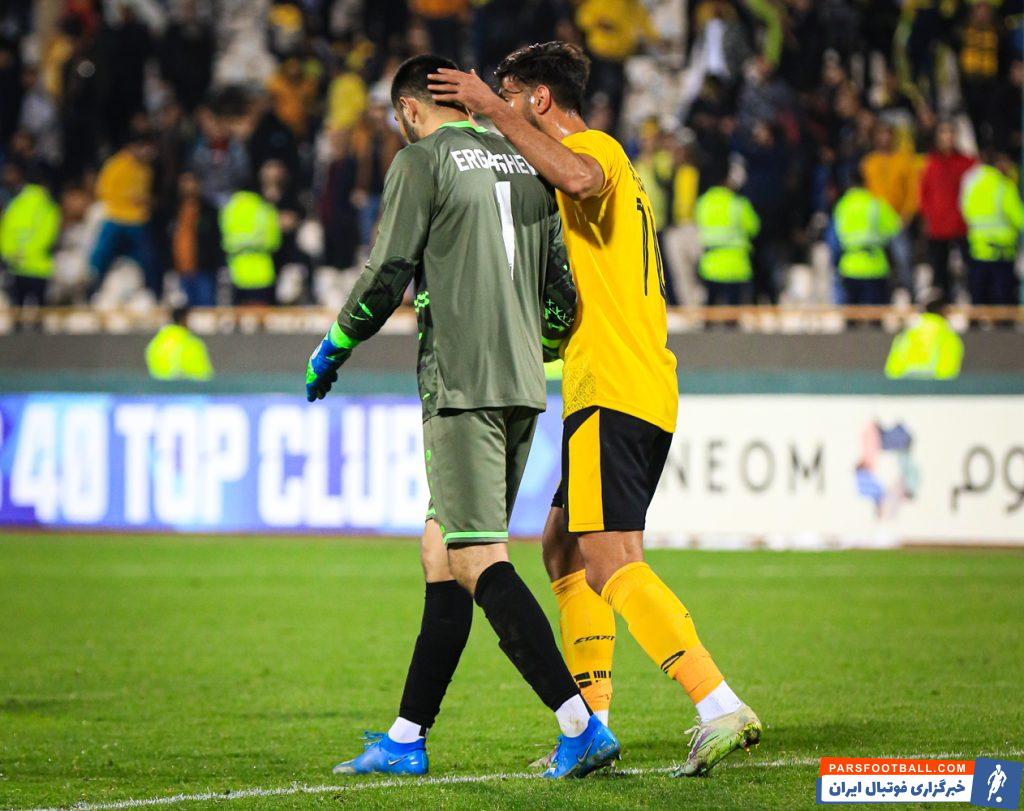 تصاویری از دلداری شهریار مغانلو به گلر آلمالیق پس از برد نه گله سپاهان