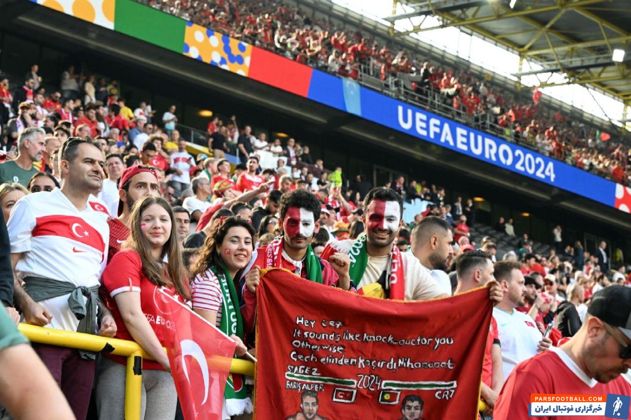 طرفداری | هواداران ترکیه و پرتغال بنرهایی با موضوع خوراکی و غذا به استادیوم آوردند!