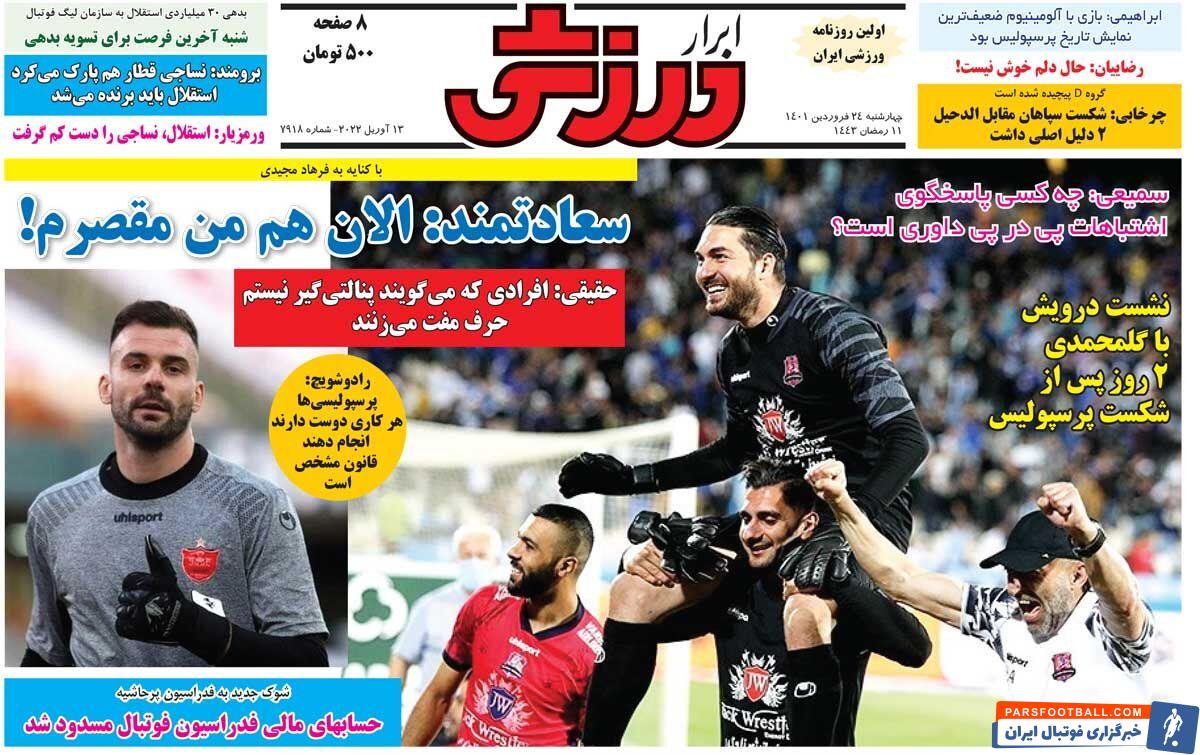 روزنامه ابرار ورزشی| سعادتمند: الان هم من مقصرم!