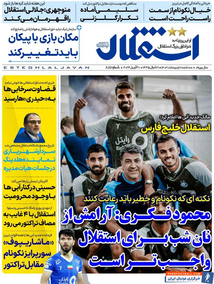 روزنامه استقلال جوان| محمود فکری: آرامش از نان شب برای استقلال واجبتر است
