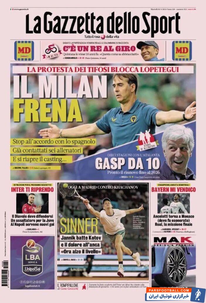 روزنامه گاتزتا| میلان ترمز زد