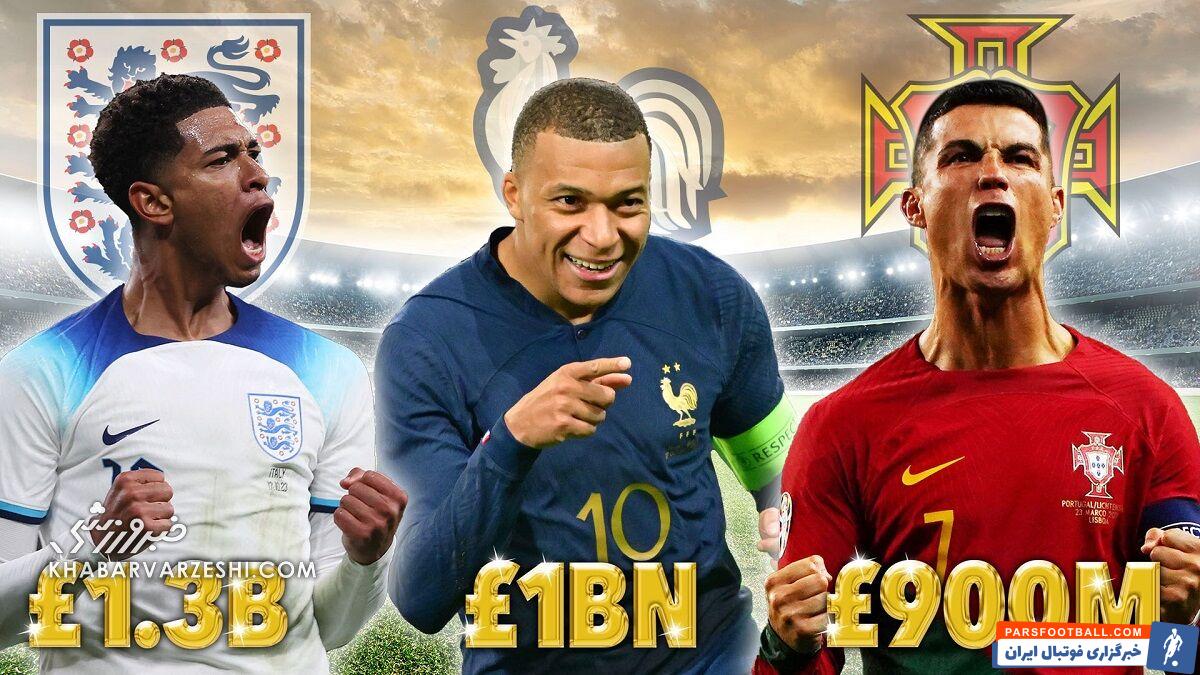 پس از آنها پرتغال (۸۹۰ میلیون پوند) و اسپانیا (۸۲۰ میلیون پوند) قرار دارند، و آلمان میزبان (۷۲۲ میلیون پوند) پنج تیم برتر را تکمیل میکند. پرتغال دارای یک تیم بسیار با استعداد است و رافائل لیائو، روبن دیاس، برونو فرناندش، برناردو سیلوا و ژائو پائولینیا را دارد که همگی بیش از ۵۰ میلیون پوند ارزش دارند. آنها همچنین کریستیانو رونالدو را هم دارند، اما با توجه به اینکه فوقستاره اکنون ۳۹ سال دارد، ارزش او نزدیک به ۱۲ میلیون پوند در نظر گرفته میشود.