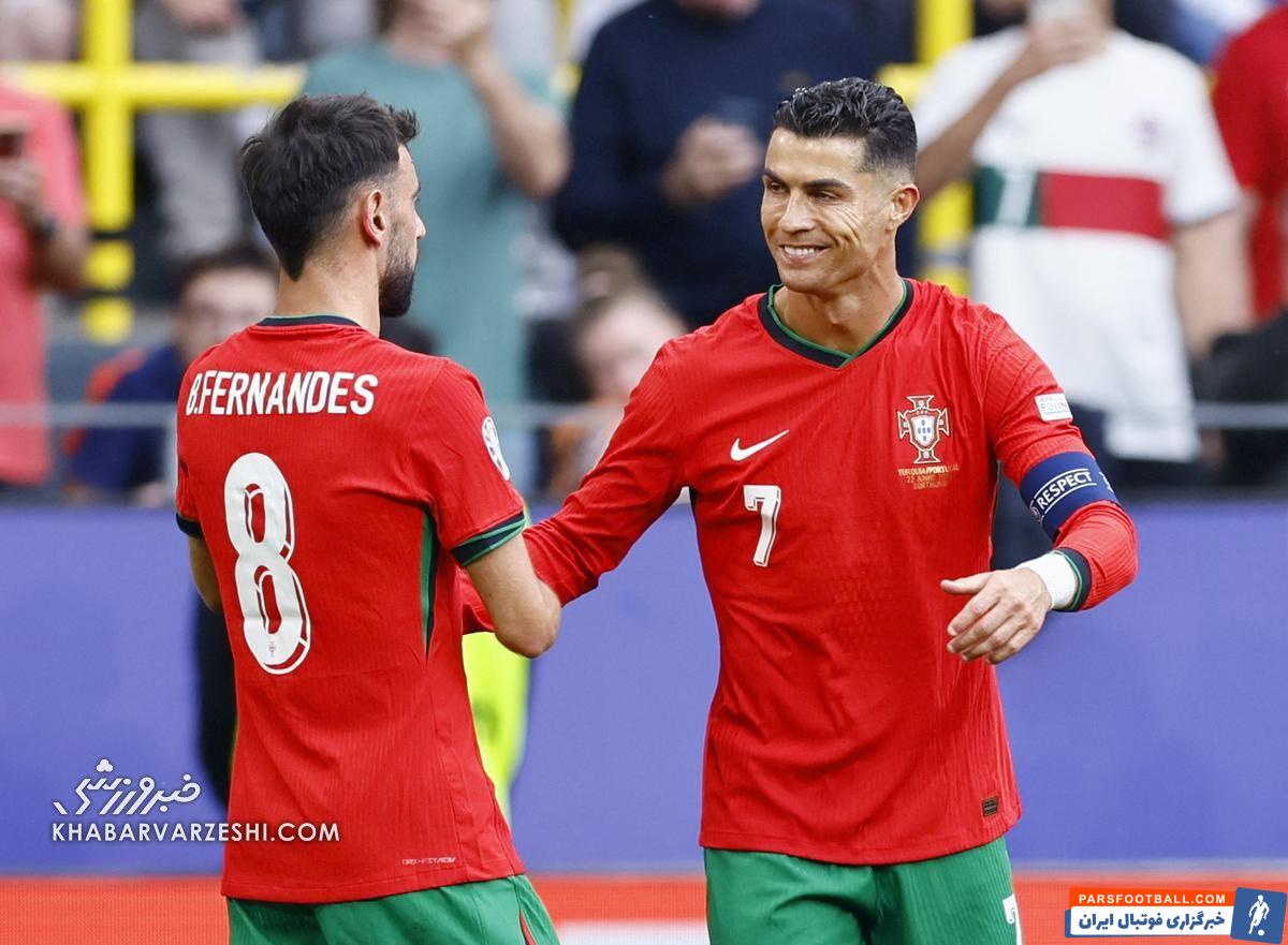 تیم ملی پرتغال در دومین بازی مرحله گروهی یورو ۲۰۲۴ مقابل ترکیه به پیروزی رسید و سه امتیاز شیرین را از آن خود کرد. کریستیانو رونالدو در نیمه دوم این بازی موقعیتی بینظیر برای گلزنی داشت اما به برونو فرناندش پاس داد تا گل سوم به نام همتیمیاش ثبت شود. بازی با نتیجه ۳-۰ به پایان رسید و فرناندش بعد از بازی از حرکت زیبایی که رونالدو انجام داد تمجید کرد.